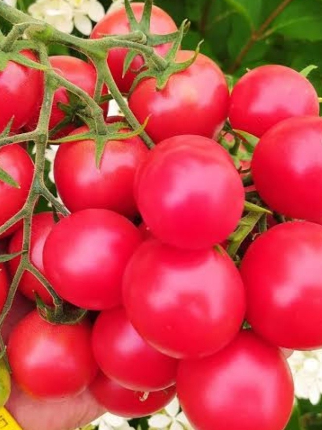 Краткое описание сорта из интернета: Малина трестон- это высокий индетерминантный сорт томата. Плоды имеют розово- малиновый цвет и круглую форму, массой 40гр. и обладают сладким вкусом. Относится к среднеранним, плоды начинают созревать через 100-110 дней после появления всходов. Очень урожайный сорт. Формируют в 2-3 ствола. Посадила я его в улитку 7 марта. 15 марта пересадила в стаканчики 500мл. Так они выглядели 23 марта: А это 13 апреля: Рассада не вытянулась, куст тонкий с обычными листьями. После высадки в теплицу , кустик расправился, потолстел, это он 29 мая: 11 июня появились первые плодики: А это 6 июля: Созрел одним из первых, 23 июля: Очень интересный, насыщенный малиновый цвет: Томаты небольшие, коктейльные, весом 40-50 грамм: Вот столько весят томаты с одного куста, сверху ещё висят зелёные : А так они выглядят в продольном и поперечном разрезе: Вкус у томатов насыщенный , сладкий, с небольшой кислинкой и приятным послевкусием. Очень понравился! Взяла из томатов сем