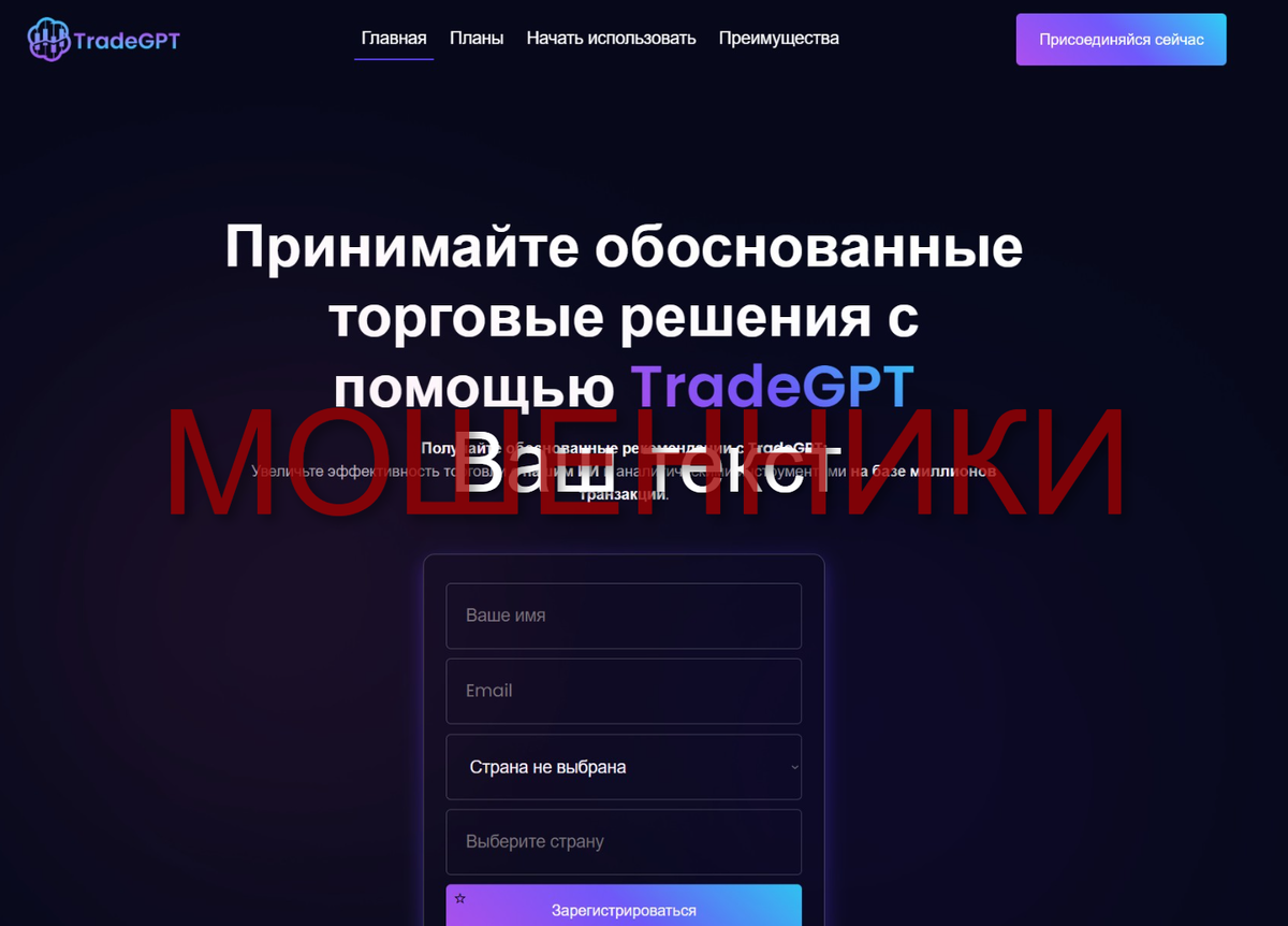 TradeGPT рекламируется как автоматизированная торговая платформа, использующая искусственный интеллект для анализа рынка и заключения прибыльных сделок. Разработчики обещают: