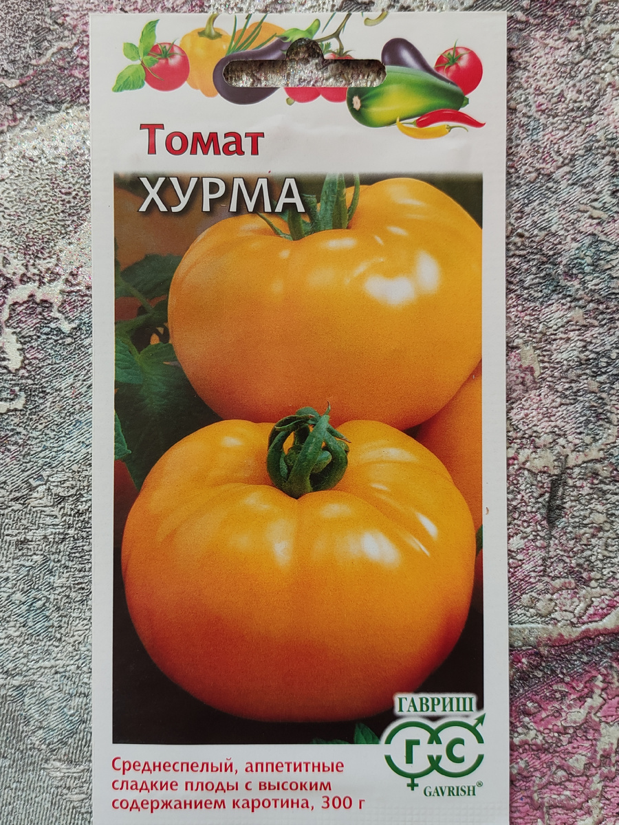 Приветствую всех на своём канале , сегодня расскажу про томат со сладким названием "Хурма". Эти семена я купила в обычном магазине за 45 руб: Пачка семян с другой стороны : Характеристики сорта из интернета : Посадила его в улитку 11 марта, 17 марта появились всходы и я пересадила росточки в стаканы 500 мл. Так он выглядел 1 апреля: Вытянулся сильно и был такой хилый, думала сдохнет. После пересадки в теплицу расправился и окреп: А 11 июня он наконец зацвёл, намного позднее остальных томатов: Плоды выросли очень быстро, даже сфотографировать не успела. 19 июля томаты начали желтеть: Очень много плодов на одном кустике: 27 июля томат стал оранжевым: Вот поближе, очень яркий, плотный красавчик: Весом томаты 100-150 грамм. Так он выглядит на разрезе: Попробовала. Мякоть нежная, кожа тонкая. Вкус обычный, как у магазинных томатов, не особо сладкий, с небольшой кислинкой. Показался даже немного пресноват, но это думаю из- за того, что я перепробовала в этом году много других вкуснейши