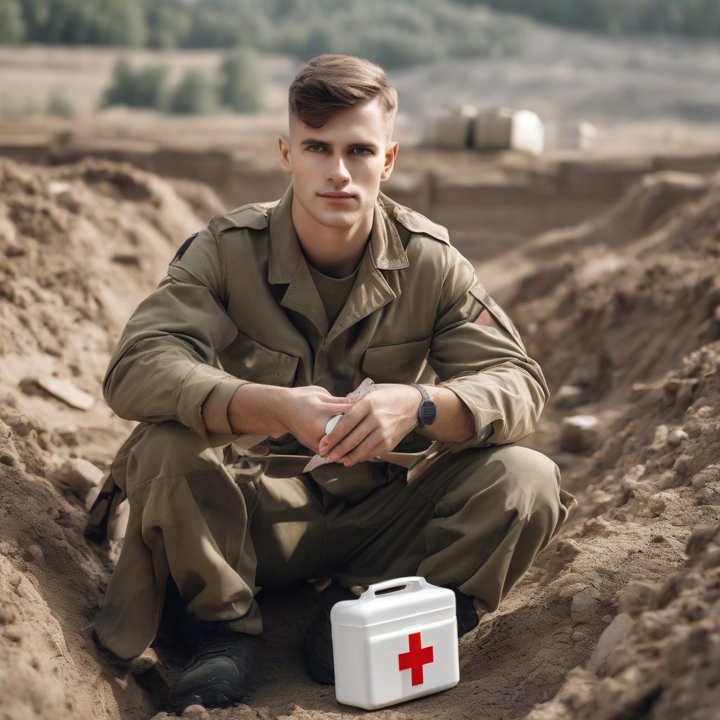 Дмитрий решил, что её кто-то обронил, а взрывом накрыло, но не до конца. Почему никто не заметил её раньше? Может, земля посыпалась от недавних взрывов неподалёку. Или дождик помог. Но военврач решил вещь подобрать, потому как полезная: внутри жгут, бандаж, кровоостанавливающий бинт, носоглоточный воздуховод, набор для декомпрессии и много чего ещё. Замерев, военврач стал всматриваться в хмурое небо, щурясь от летящих сверху дождевых капель. Посидел на дне траншеи несколько минут, оценивая обстановку. Ничего сверху не заметил, встал в полный рост и стал раскапывать руками аптечку.