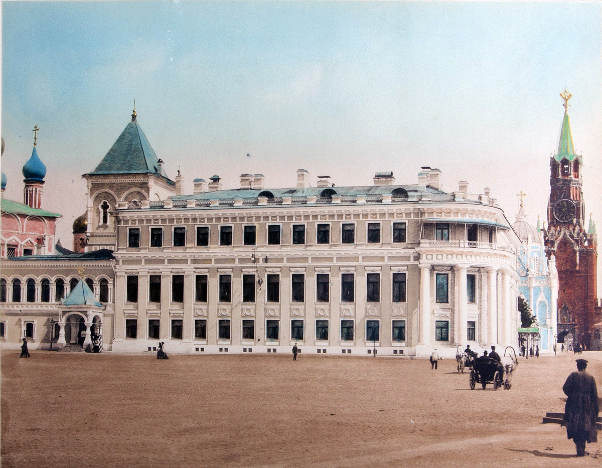Малый Николаевский дворец — это историческое здание, которое находилось в Московском Кремле на углу Ивановской площади. Построенное в 1775–1776 годах по проекту архитектора Матвея Казакова, оно изначально служило резиденцией митрополита Платона и называлось Архиерейским домом. После его смерти в 1812 году дворец перешел в ведение дворцового ведомства и в 1817 году стал резиденцией великого князя Николая Павловича, будущего императора Николая I. Именно здесь в 1818 году родился будущий император Александр II.