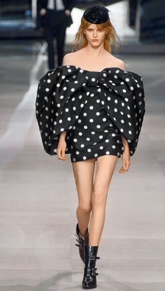Если в прошедшие сезоны горох изредка встречался на модных показах, то теперь он стал абсолютным фаворитом. В тренде классика: белое поле и черный горох. Причем горошины расположены на значительном друг от друга расстоянии. В принципе ничто не запрещает экспериментировать и пробовать другие сочетания.