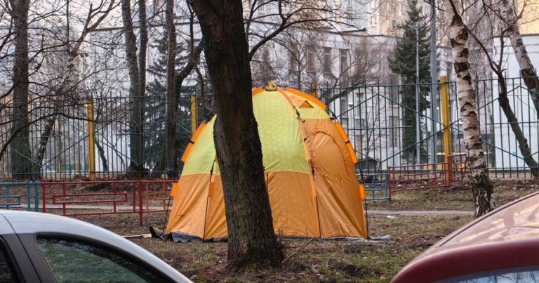 Погода подает противоречивые сигналы: с одной стороны, в Москве самые холодные дни (если не сказать недели) с начала года. С другой стороны, днем уже вовсю светит солнце — кто-то даже решил разместиться под окнами домов с палаткой. «В районе Орехово-Борисово нашли доступное жилье. Без мам, пап, ипотек и без регистрации в ЕГРН», — пишет телеграм-канал «Изнанка Москвы». Вполне может быть, что это раннее бронирование на шашлык к майским праздникам. Они у нас в этом году планируются особенно длинными. На всякий случай стоит отметить, что разведение костров вблизи жилых домов запрещено. Это уже не первый случай, когда жители Орехово-Борисово жалуются на появление «супердоступного жилья». В январе похожий случай был в подъезде одного из домов. В Орехово-Борисово в последнее время вообще происходит много странного. Вчера по району с реактивной скоростью носилась лошадь, благо никого не сбила. Местные уже шутят, что в районе наблюдается дефицит настоящих русских женщин. Фото: @reversemoscow
