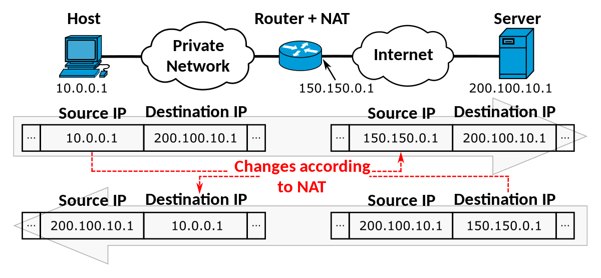 Когда устройство внутри сети пытается выйти в Интернет, маршрутизатор с NAT преобразует частный IP-адрес устройства в свой публичный IP-адрес.