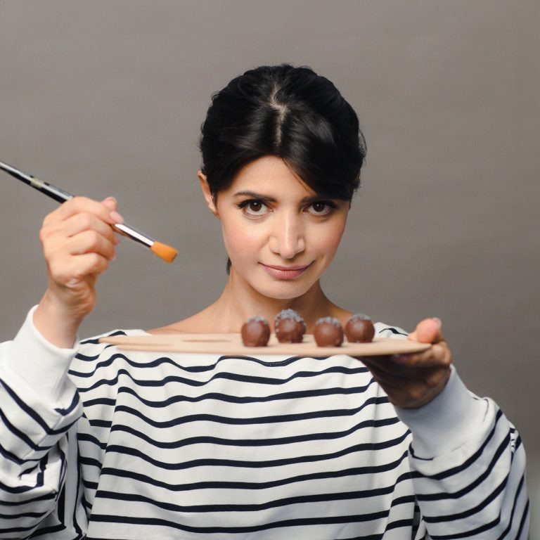 Я запустила онлайн-обучение. Это индивидуальное занятие, на котором каждый ученик делает свою уникальную конфету. Человек мне сообщает свой любимый тип шоколада, любимый сыр, пряности, фрукты, и мы делаем трюфель по его предпочтениям. Мне не интересно обучать людей делать мои десерты, гораздо интереснее, когда человек готовит что-то свое.