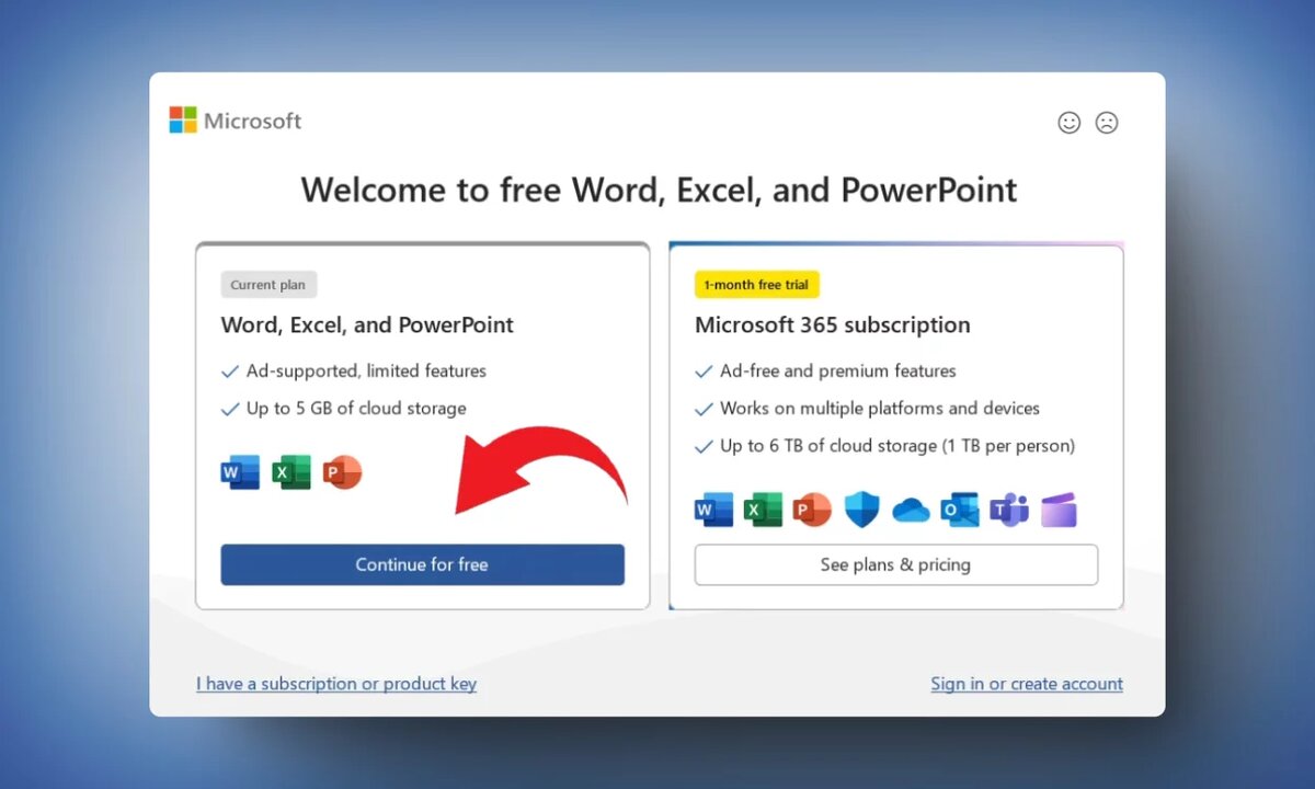 Microsoft начала тестирование бесплатной версии пакета Office для Windows, которую можно использовать для редактирования документов без покупки ключа продукта или оформления подписки Microsoft 365. И речь идёт не о веб-версии Office, а о полноценных десктопных приложениях Word, Excel и PowerPoint. Но, конечно, не всё так просто. При редактировании документов в бесплатной версии Office для Windows на экране будет постоянно отображаться реклама. Кроме этого, приложения позволяют сохранять файлы только в облаке OneDrive и не поддерживают работу с локальными файлами. Возможности приложения в бесплатной версии существенно ограничены. Вы не сможете воспользоваться дополнениями, диктовкой, расширенным форматированием, SmartArt и многими другими функциями. Чтобы получить доступ к бесплатной версии Office для Windows, необходимо пропустить предложение войти в учётную запись Microsoft при первом запуске Word, Excel или PowerPoint после их установки. После этого вы, возможно, получите предложение