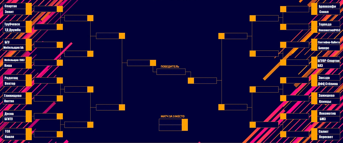 Согласно жеребьёвке определились следующие пары: с/зал "Десна" Жуковка 01.03.2024 11:00 "Спартак" (Почеп) — "Зенит" (Жуковка)
