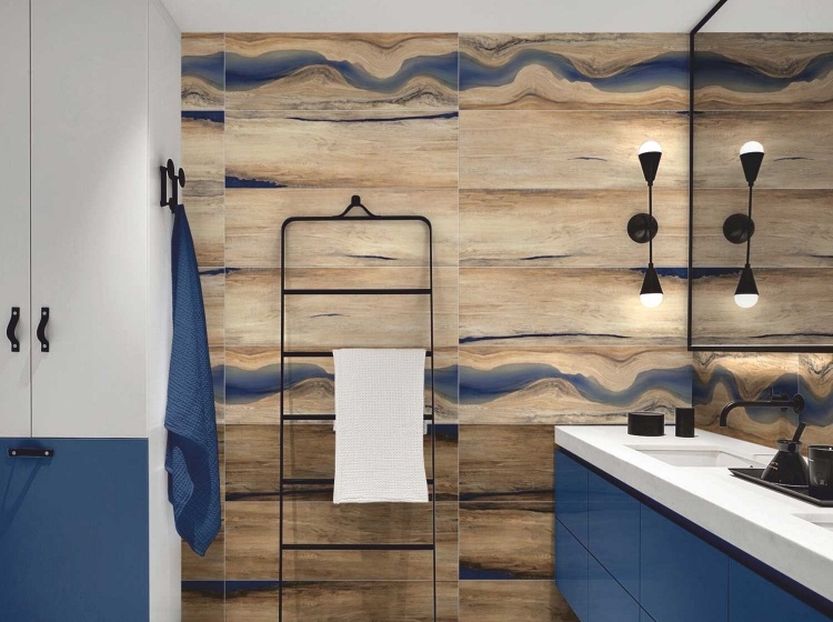 Не стоит экономить на материалах, если хотите создать стильный и долговечный дизайн. Если выбираете керамику с имитацией природных текстур, она должна выглядеть максимально реалистично. Вышла из моды однотонная квадратная плитка малого размера. Однако небольшие элементы хорошо смотрятся в композициях, мозаиках или в сочетании с другими узорами и цветами.