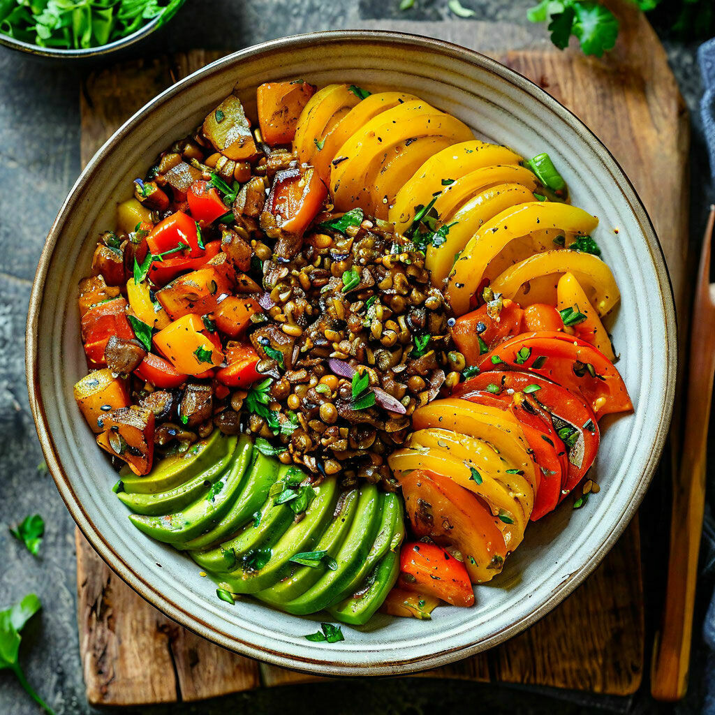 ✨Салат из чечевицы с жареными овощами✨