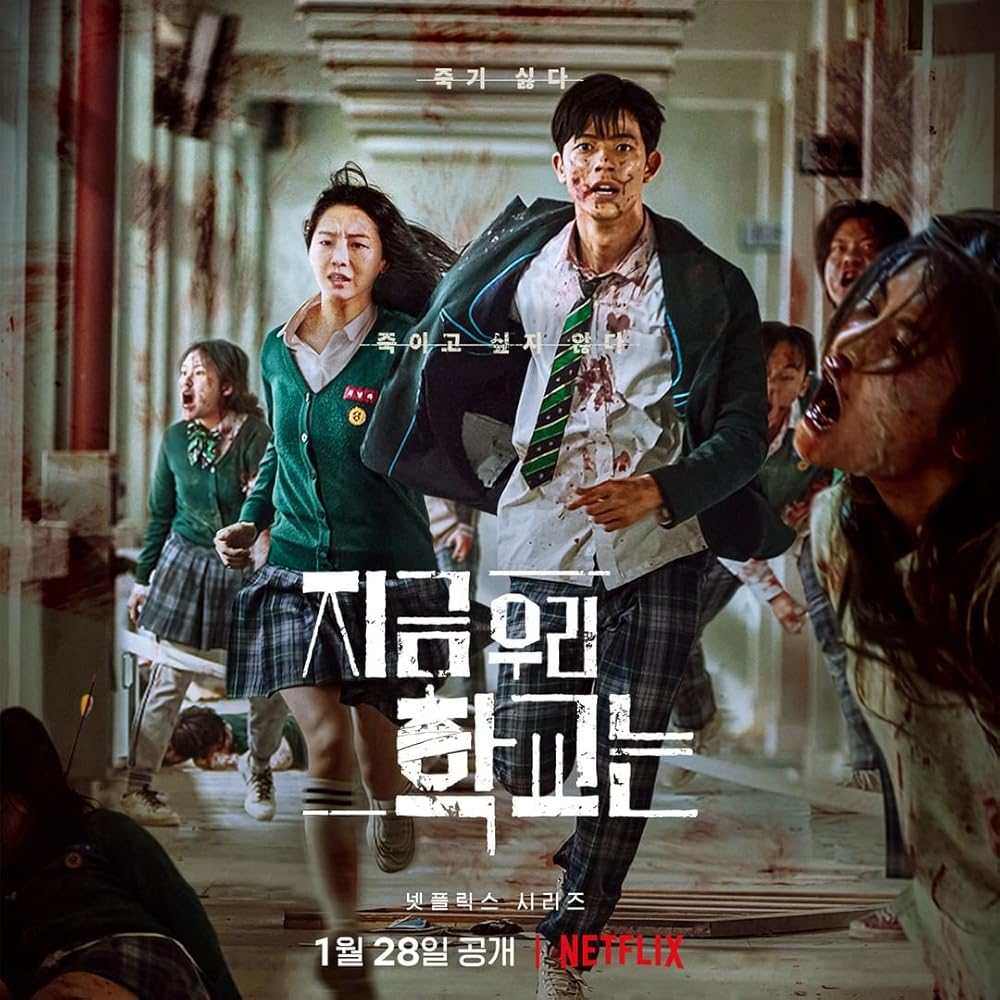 Южнокорейский сериал основанный на вебтуне Naver "Сейчас в нашей школе" Чу Донгына. Публиковался с 2009 по 2011 год. Премьера сериала состоялась 28 января 2022 года на Netflix. 6 июня 2022 года сериал был продлён на второй сезон. Обычная средняя школа оказывается в центре вспышки зомби-вируса. Попавшие в ловушку студенты должны бороться за выживание. В противном случае их ждёт участь превратиться в заражённое чудовище. Первый сезон данной дорамы имеет 12 серий. Тем кто никогда не смотрел дорамы хочется посоветовать потерпеть начало первой серии, так как кажется что сюжет долго начинает развиваться. Но будьте уверены, под конец серии уже начнётся самое интересное. Жанры данной дорамы: хоррор, зомби-апокалипсис, экшен, триллер, научная фантастика. Рекомендую к просмотру, не пожалеете о том что решились на это. Приятного просмотра. Naver (ведущая южнокорейская интернет-компания, оператор самого популярного в стране портала Naver) Вебтуне (южнокорейский цифровой комикс, обычно предназнач