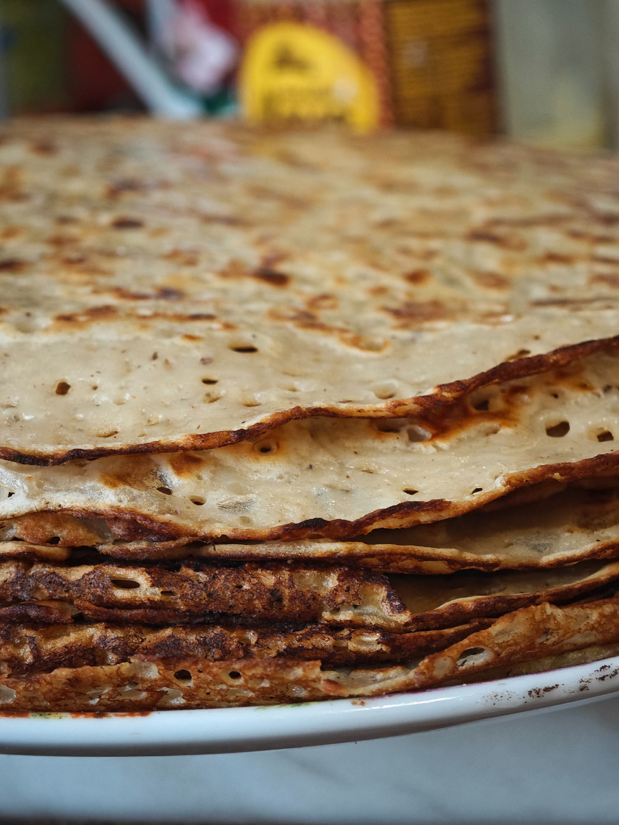 Меня зовут Настя. Я жена православного священника и мама четверых детей. Наши мальчики – погодки. Мы живём в небольшом селе Саратовской области (с. Приречное), где проживает меньше 200 человек. Бегу к вам с рецептиком😍 И с веселой масленичной песенкой 😉⤵️ Рецепт этот я опробовала в том году и в этом году могу подтвердить: работает!🤣 Секрет этого рецепта в том, что соли должно быть не как мы привыкли, чуть-чуть совсем (ну блины же сладкие), а прям от души😁 И вторая фишечка рецепта – добавить в тесто специи, чтобы помочь пищеварению справиться с блинным нашествием. Я заметила, что так не только вкуснее, но и легче в утробе..ой, то есть, на душе 🤣❤️ У меня получается 25 тонких блинчиков (диаметр моей сковороды 21 см), я беру: 🔹В миску 2 стакана молока – прям из холодильника плюхаю, не церемонясь. Стакан у меня 300 мл, если что👌🏻 🔹Туда же 2 яйца 🔹Сахар 3 столовые ложки 🔹Соль – я кладу десертную ложку без горки 🔹Разбултыхать в миске это всё энергично 🔹Муки пшеничной на гл
