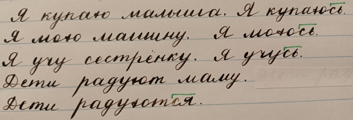 1. Проверка домашнего задания. 2. Объявление темы урока. На доске записаны предложения: - Прочитайте пары предложений и сравните глаголы. Чем отличаются по смыслу эти предложения? (Вторые предложения в парах указывают, что действие направлено на себя: купаюсь - купаю себя, радуются - радуют себя). - Какая часть слова изменила смысл глаголов? (-ся, -сь) Сегодня мы будем учиться писать глаголы с частицами -ся и -сь. 3. Работа по теме урока. Откройте учебник на стр. 98 и прочитайте правило. - Какую частицу имеют на конце некоторые глаголы? - Когда пишется частица -ся? - сь? Упр. 331. Прочитайте предложения. Выпишем глаголы с частицами -ся, -сь. Разберём их по составу. Частицы -ся и -сь называют постфиксами. Они обозначаются значком "приставка наоборот". Частицы -ся, -сь входят в основу слова. Упр. 332. Спишите стихотворения каллиграфически. Выделите постфиксы - ся и - сь. (Выбираются самые аккуратные работы). Найдем и объясним все известные орфограммы и укажем, в какой части слова они на