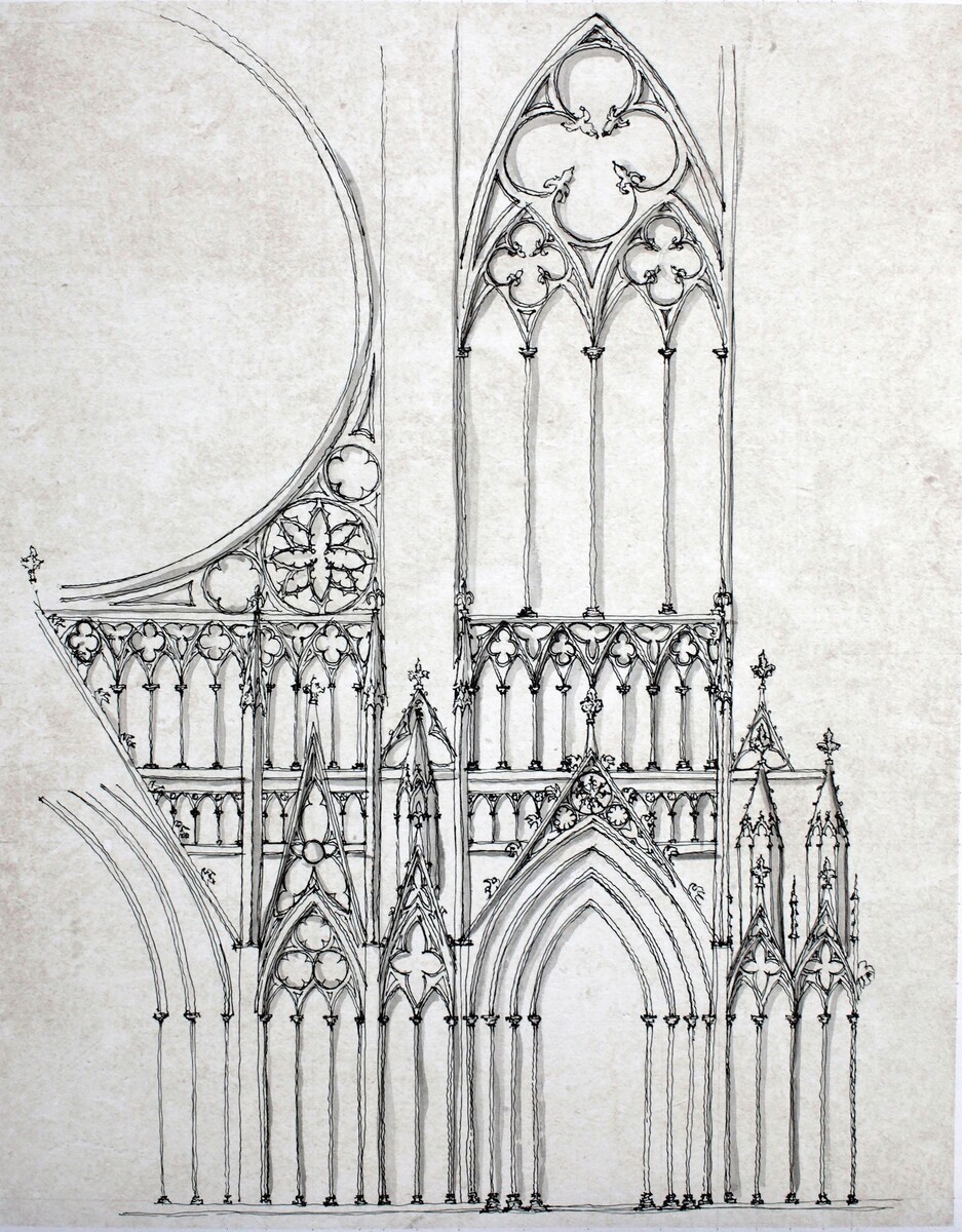 Придавая всему тайный, символический смысл и насыщая соответствующим художественным выражением самые архитектурные формы, готика превратила в ребра каких-то невиданных огромных химер и аркбутаны, передающие распор сводов центрального нефа на пристроенные к наружной стене массивные каменные столбы - контрфорсы. Скелет здания разросся в виде аркбутанов в окружающее собор пространство и окрасил его своей странной и выразительной динамикой.