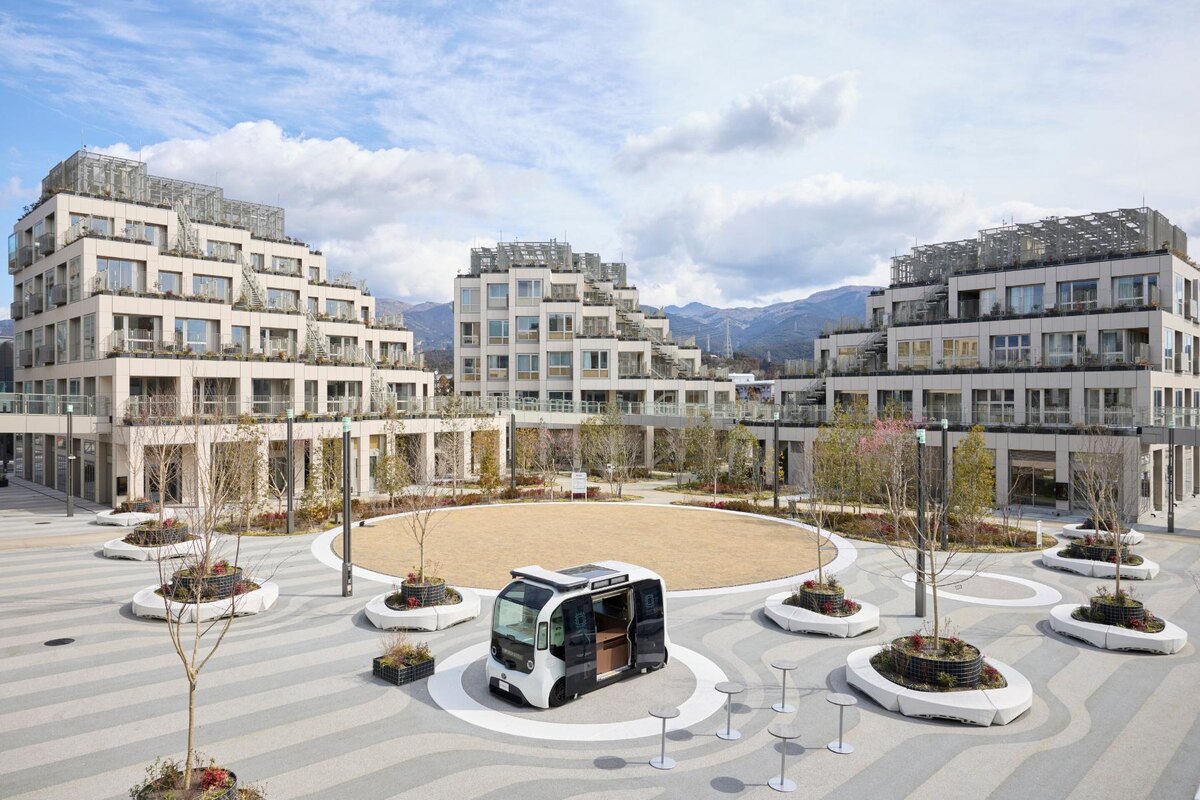 Фотография, предоставленная Toyota: Центральная площадь жилого квартала "Плетеного города" в Сусоно, префектура Сидзуока, февраль 2025 года.