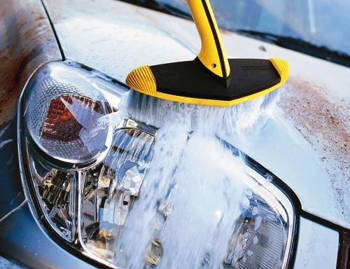 Кроме вышеперечисленных, у бытовых минимоек бывают ещё кое-какие навороты: как правило, это баки для моющего средства, способность забирать воду из емкости (кстати, подвешивайте её повыше, давление будет больше), отсеки для принадлежностей (очень удобная, хотя и не критичная «фича»), выдвигающаяся ручка транспортировки, барабан для сматывания шланга и устройство для втягивания кабеля, как в пылесосе — ну это обычно у старших моделей. В комплекте к «Керхерам» довольно часто идут переходники на садовые шланги формата А3/4, система Quick Connect.
