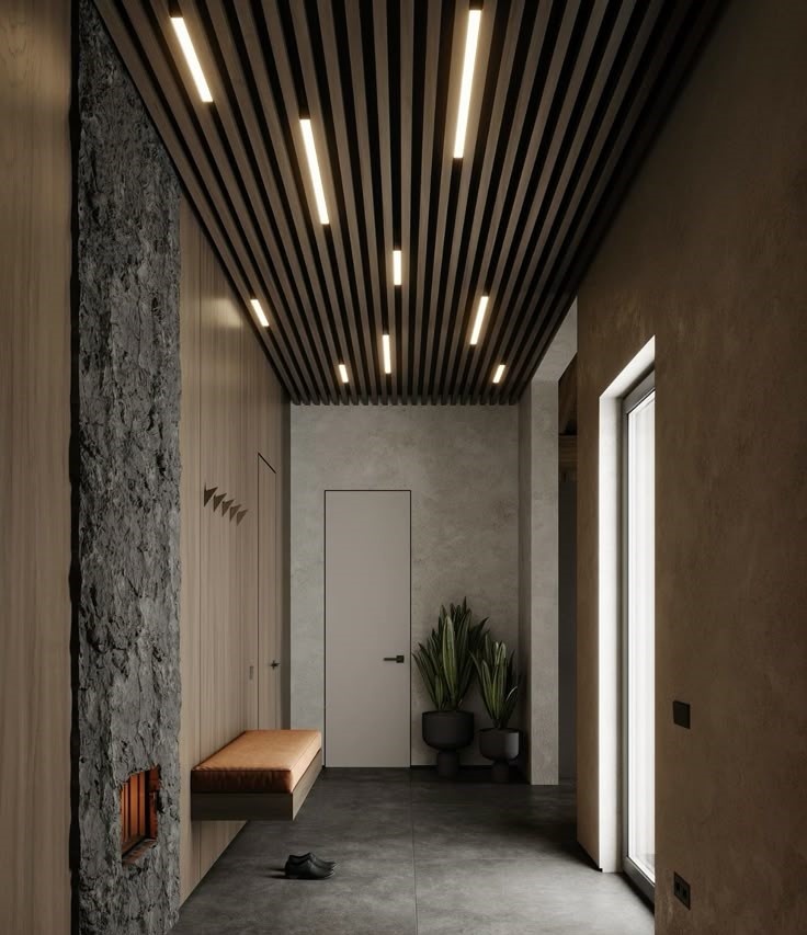 - Акцентные потолки: Потолки, выделенные ярким цветом, необычной текстурой или узором.