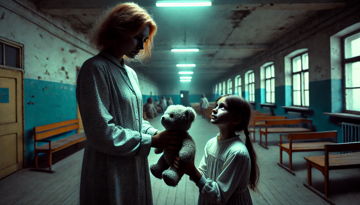 Маша, худенькая, с растрёпанными светлыми косичками, осторожно посмотрела на плюшевого медведя, но не потянулась к нему сразу, как делают дети, когда им дарят игрушки. Её взгляд был серьёзным, изучающим. Не было радостного блеска в глазах, не было восторга, который Наташа привыкла видеть у других ребят.