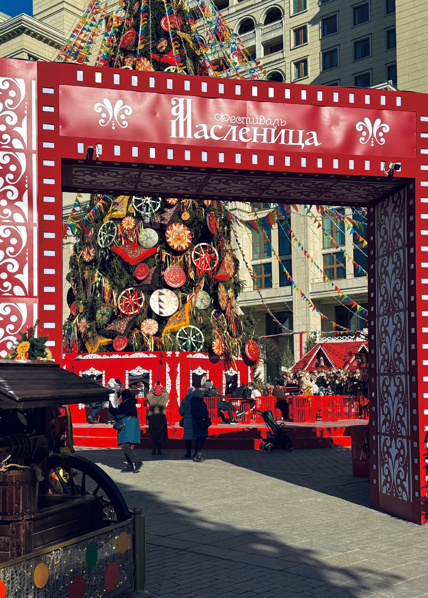 В Москве в самом разгаре масленичные гуляния, еще и с погодой повезло, одно удовольствие пройтись по Манежной площади. При входе тебя встречает красавица ель, которая сменила свой наряд под стать празднику. А сколько интересных деревянных арт-объектов, даже кажется, что находишься не в центре Москвы, а в одной из русских народных сказок. Но главная жемчужина – настоящая русская печь, в которой пекут блины. А блины на Манежной площади представлены на любой вкус: традиционные со сметаной, медом и вареньем, по-сибирски - с муксуном, по-московски - с красной икрой и др. На гуляниях можно не только поесть блинов, но и приобщится к кузнечному делу. Мастер-классы проводят известные мастера Союза кузнецов России, которые помогут выковать жаворонка.