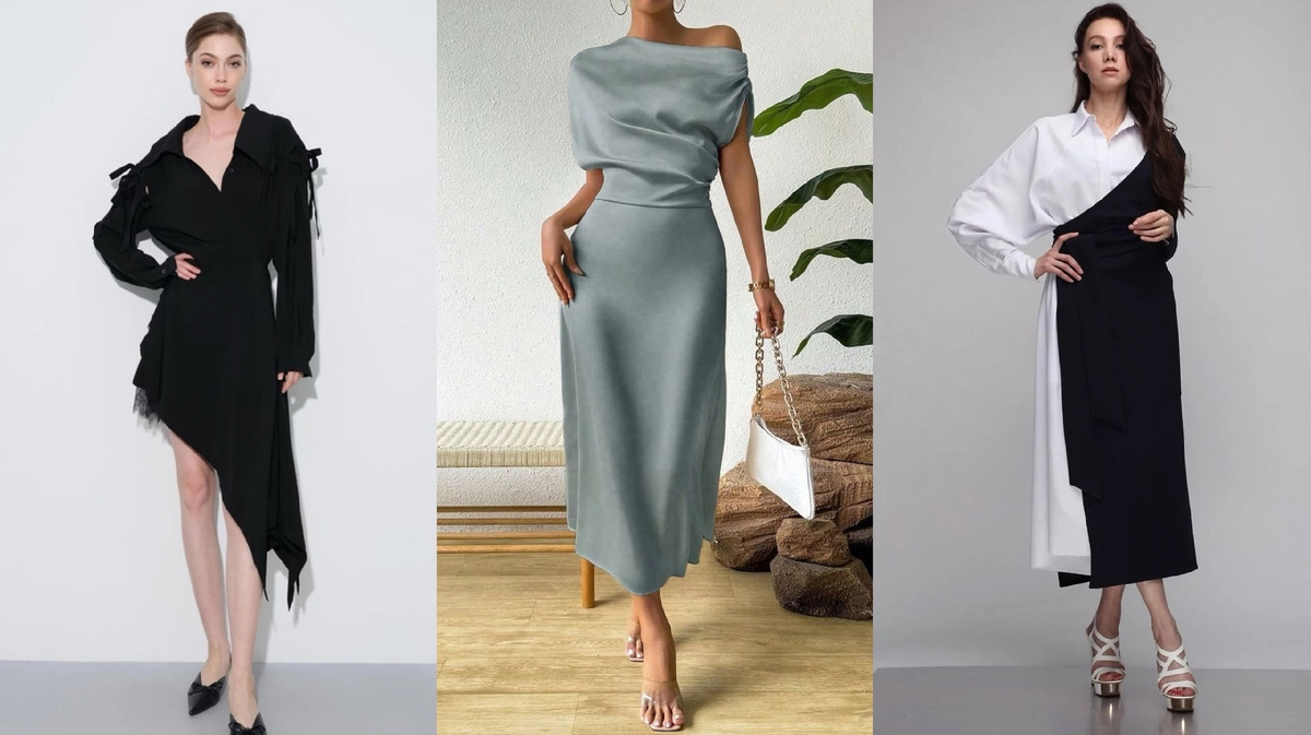 Асимметрия может выражаться не только в длине подола. Например, актуальный вариант – одно «случайно» открытое плечо. Благодаря особенности кроя одна бретелька соскальзывает с руки, создавая легкий эффект небрежности. Это стильно и привлекательно.