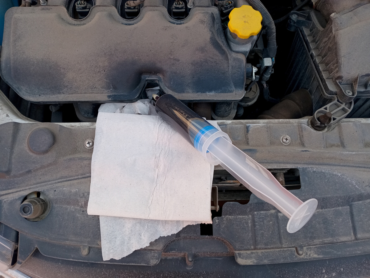 Иногда бывает, что при замене масла в двигателе - перелили свежего выше максимума... Нужно слить лишнее, но пробка в поддоне уже закручена и лезть снова под машину - просто жутко не хочется... В этом случае поможет шприц Жане на 150 кубиков и кусок телевизионного антенного кабеля! Вещи рассказываю в целом банальные - просто с нюансами по технике реализации, которые может быть будут кому-то полезны. Шприц Жане на 150 кубов - это шприц без иглы. Продается в любой аптеке (по состоянию на зиму 2025 года стоил 130 рублей), или на Озоне (заметно дороже). Главная проблема - КАК ДОСТАТЬ ШПРИЦОМ ДО МАСЛА В КАРТЕРЕ ЧЕРЕЗ МАСЛЯНЫЙ ЩУП. Ибо для этого требуется удлинить шприц некой тонкой (чтобы пролезла в канал щупа), но при этом жесткой и термостойкой (не сминающейся от горячего масла) трубочкой. Порой, когда срочно нужно, такую трубочку хуй найдешь... Основная идея этой статьи - в качестве трубочки хорошо подходит верхняя изоляция АНТЕННОГО КОАКСИАЛЬНОГО КАБЕЛЯ, который продается в любом магазин