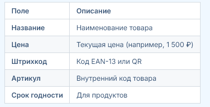 - Пакетная печать: Для большого ассортимента используйте групповой выбор товаров.