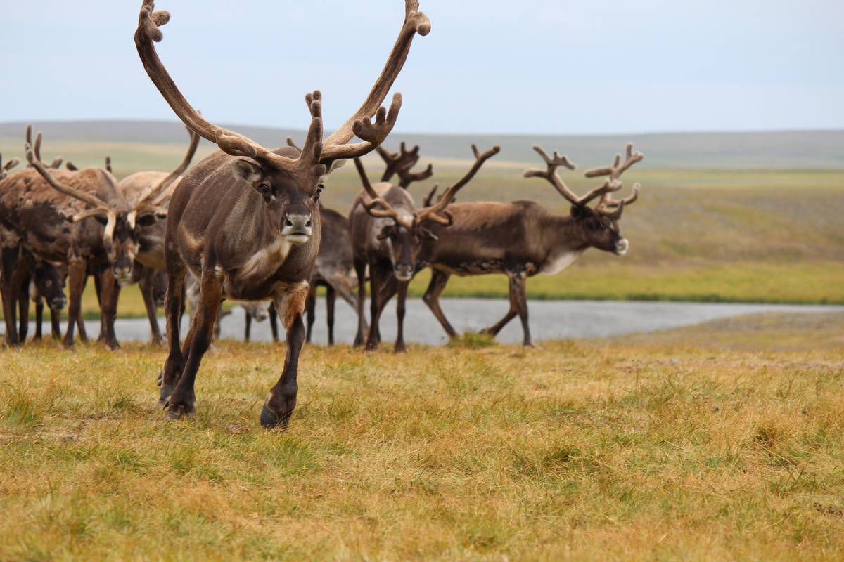 Только у северных оленей рога носит не только самец, но и самка. И у тех, и у других рога большие, длинные - достигают полутора метров, со сложными ответвлениями и изгибом, а весят такие рога до 12 килограммов. Они и разнообразнее, чем у других оленей. Рога самцы сбрасывать начинают в ноябре, и ко Дню оленевода, который на Ямале отмечается с февраля по апрель, многие уже лишаются своего главного украшения и защиты. А важенки остаются без рогов в июле, примерно через месяц после отела. Всю беременность они ходят с рогами, чтобы иметь защиту от диких животных. Также это помогает самкам в зимний период, когда глубокий снег. Ведь чтобы добраться до ягеля, нужно приложить немало усилий. Рога же помогают отгонять от еды более сильных, но безрогих, самцов. Отрастать рога у самцов и самок начинают тоже в разное время - в апреле и июле соответственно.