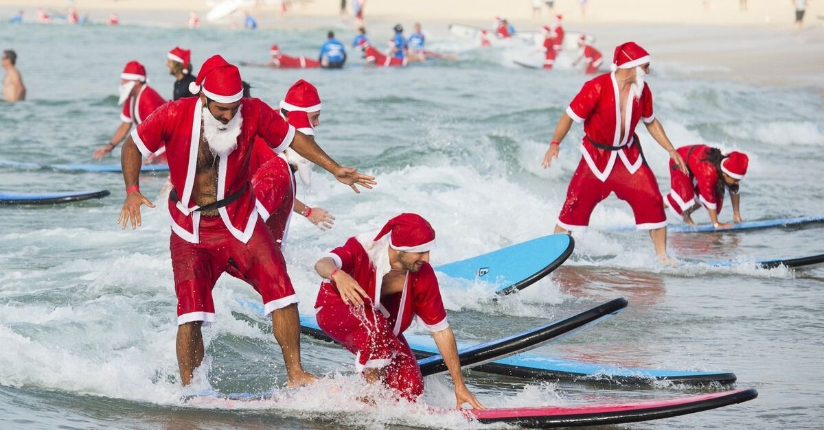 - Санта на серфе: В Австралии Санта-Клаус часто изображается на доске для серфинга, что отражает местный колорит.