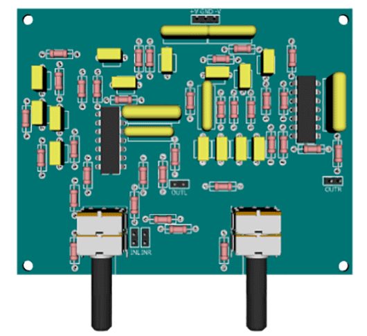 THD (1 кГц) – 0,002%. Ёмкостной сумматор на конденсаторах С8 и С6 восстанавливает низкочастотную и высокочастотную части спектра звукового сигнала, а их соотношение можно регулировать потенциометрами регулятора тембра ВЧ R8 и тембра НЧ R1. Буферные усилители DA1.4 и DA1.3 компенсируют ослабление уровней сигнала, вызванное пассивными фильтрам