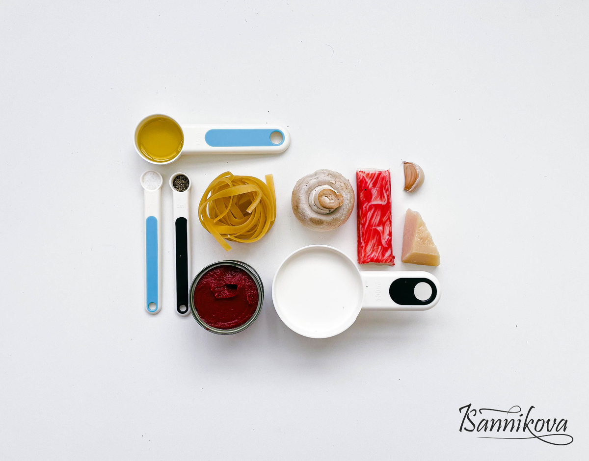 Рецепт пошагового приготовления пасты с крабовым мясом и шампиньонами в домашних условиях с фотографиями Ссылка на рецепт: https://ksenia-sannikova.ru/paste/recipe182/ Ингредиенты: 1. пасту отварить в подсоленой воде, откинуть на дуршлаг, чеснок раздавить плоской стороной ножа, шампиньоны порезать дольками, крабовое мясо разорвать, сыр натереть на терке 2. масло разогреть, чеснок обжарить до лёгкого "румянца", затем добавить грибы, соль и перец, жарить 1 - 2 минуты на среднем огне 3. затем добавить сливки и томатную пасту, тушить 1 минуту Совет: если у вас сливки жирностью 10% , добавьте немного крахмала (картофельный/кукурузный) 4. добавить феттучине и крабовое мясо, перемешать и убрать с огня 5. паста с крабовым мясом готова, украсить зелёным луком и пармезаном