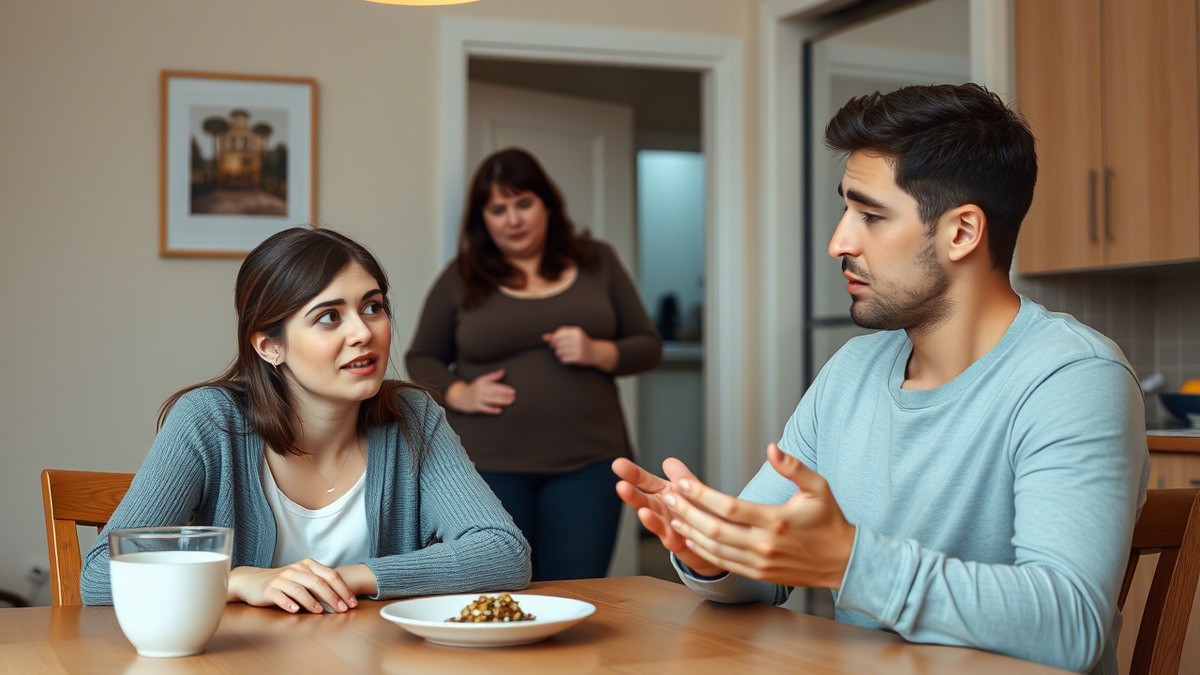Юра замер в дверях кухни, не снимая пиджака. В воздухе висел запах остывшего обеда и невысказанных претензий. Он смотрел то на жену, то на нетронутую кастрюлю, явно не зная, как начать разговор.