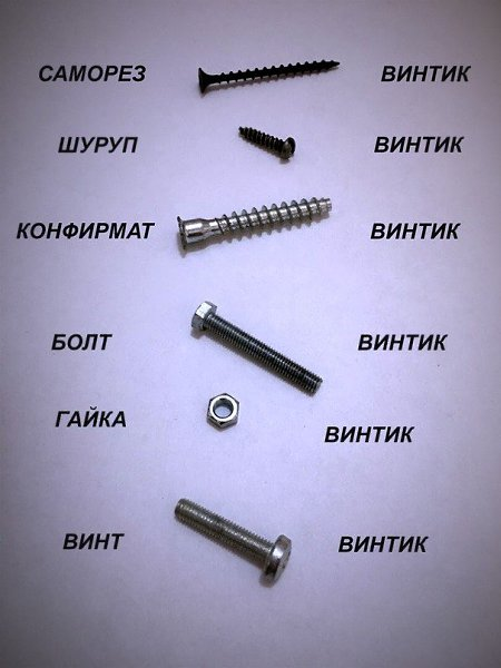 Для умников и профессионалов, который обязательно начнут спорить в комментариях, говорю, что у меня статья для любителей и понятно, что есть множество гибридов, по которым так сразу и не поймёшь, что это: винт, болт или шуруп.
