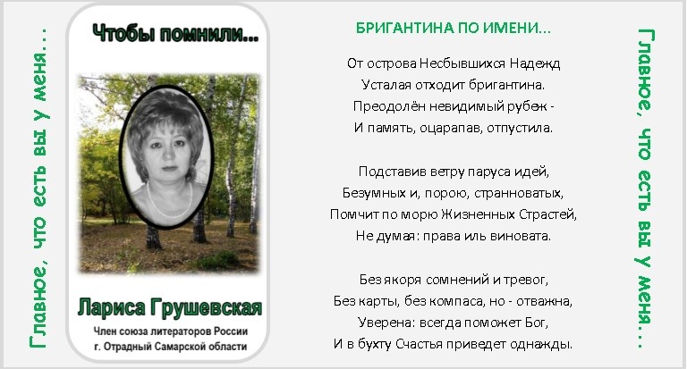 К сожалению, Лариса уже никогда не сможет разместить их сама. Мы дружили с ней. И у меня осталось несколько ее неопубликованных стихотворений.