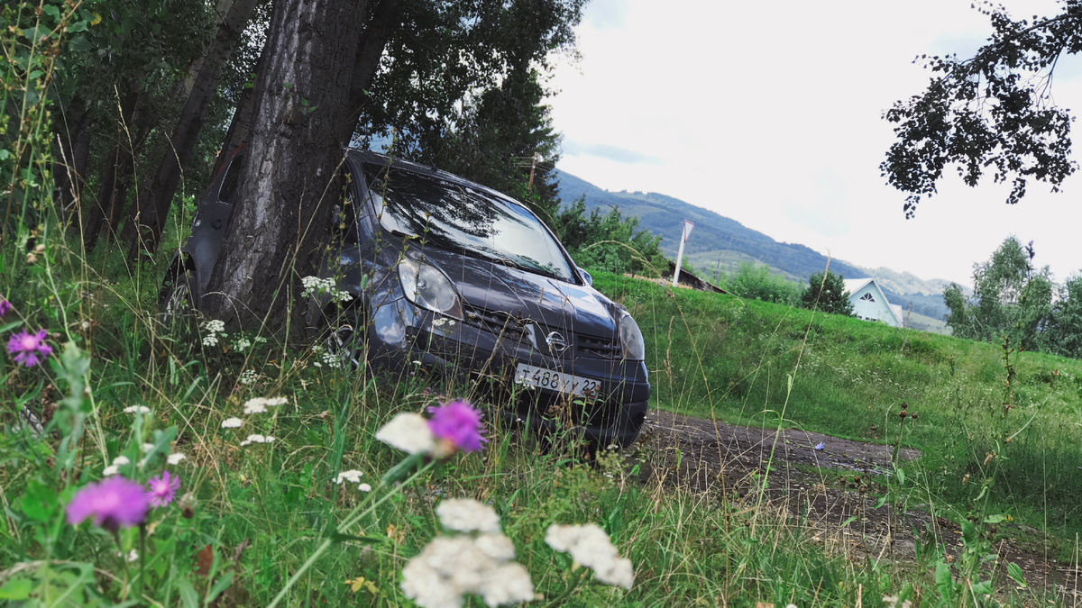 Жил-был Енот, но не тот енот, который пушистый, с ушами и лапками, а тот, который Nissan Note механика, 1,4, передний привод. Одиннадцатый год они вместе с водителем Аннушкой бороздили просторы Барнаула, Алтайского края и республики Алтай. Были в первые года какие-то мелкие ДТПшки с незначительными царапинами, а в последние лет 8 вообще ни одного ДТП, катались никого не трогали, и нас никто не обижал. Но вот в один прекрасный осенний денек КАМАЗик 1987 года выпуска как-то неожиданно взбудоражил нашу безмятежную автомобильную жизнь, ну а теперь подробнее. Есть у нас в городе объездная дорога через лес, две полосы в одну и две полосы в другую сторону. Проходит эта дорога через мост над железной дорогой, а потом плавно со спуском поворачивает направо. Вот так спускаясь с моста по крайней правой полосе впереди за поворотом замечаю машину на аварийке (при чем тоже Nissan Note), включаю левый поворотник, собираясь перестроиться, но поток машин едет довольно плотный, я потихоньку подъезжаю
