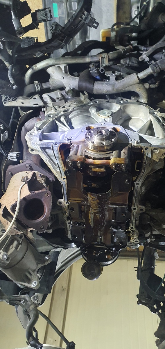 Как поменять кореной сальник (Хвостовика коленвала) Nissan Murano 51, двигатель VQ35DE замена коренного сальника.