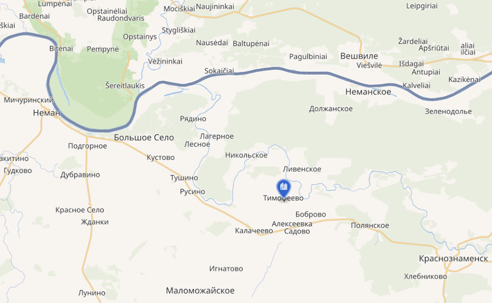 Посёлок Тимофеево находится почти на полпути между Неманом и Краснознаменском, близ реки Шешупе. До войны здесь стояла церковная деревня с храмом, имевшим необычное название.