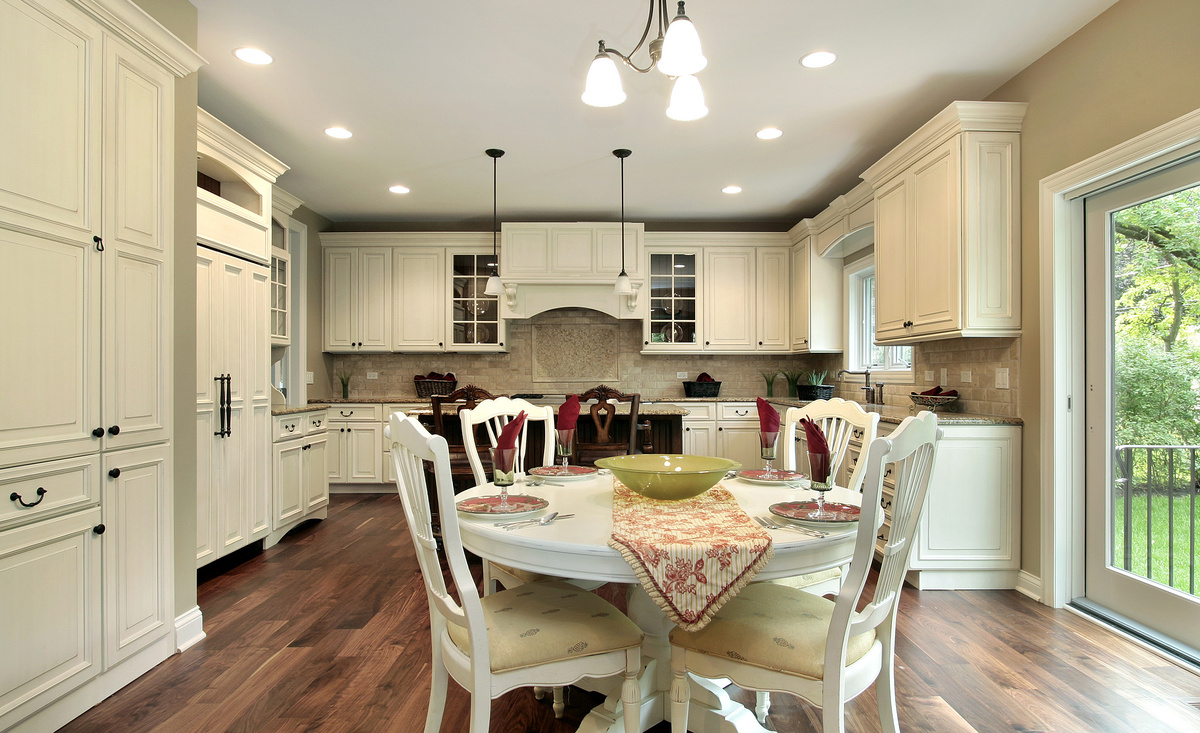 - Для кухни площадью 10–15 м² достаточно 8–12 светодиодных спотов мощностью 5–7 Вт каждый. Оптимальная цветовая температура — 3000–4000 К.