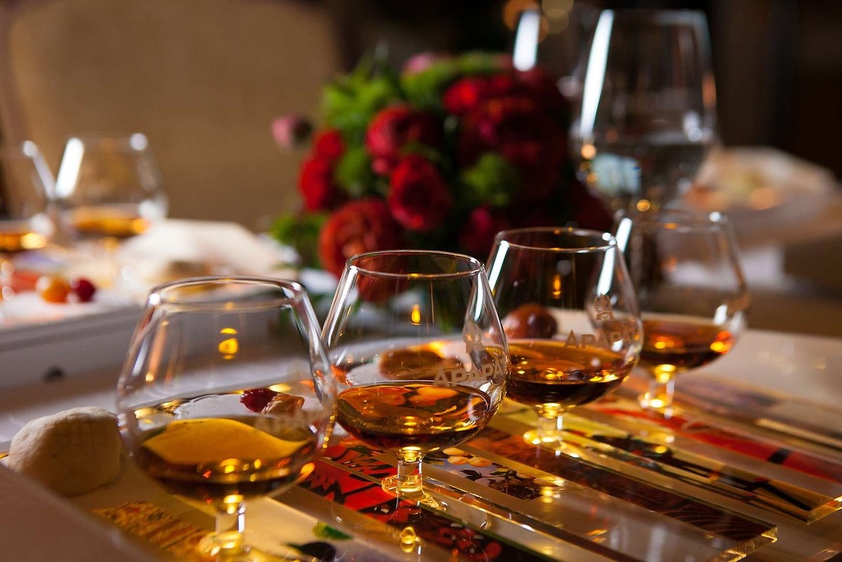 Я только начал есть мелко нарезанный сыр, когда прям перед носом опять появился коньяк.
