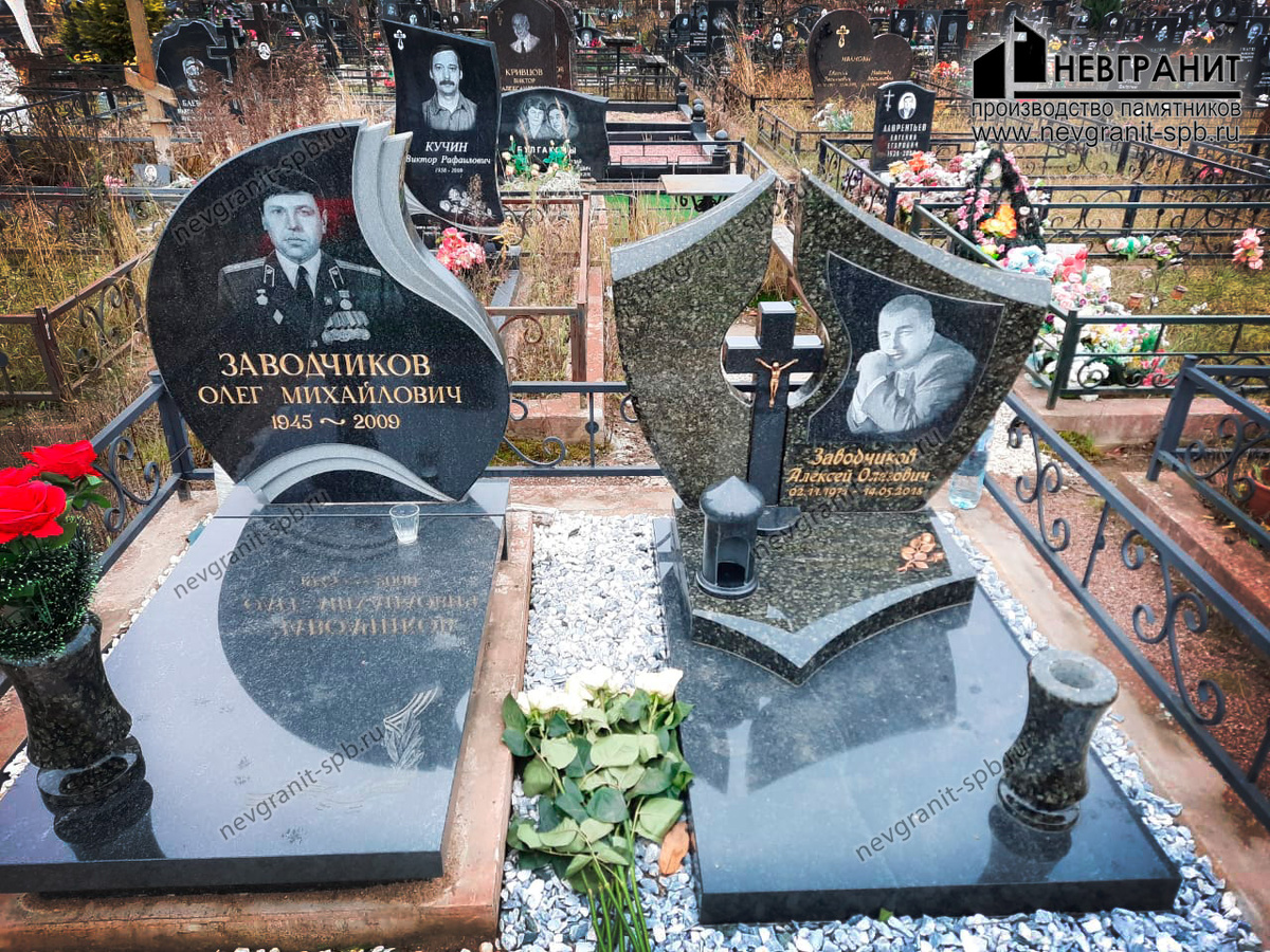 На кладбище среди множества надгробий выделяются два памятника, объединённых фамилией, но совершенно разных по стилю и настроению. Оба выполнены из гранита, но каждый из них рассказывает свою историю, отражая индивидуальность ушедших. Слева возвышается памятник, посвящённый Заводчикову Олегу Михайловичу (1945–2009). Его форма — динамичная асимметричная дуга, словно взмах крыла, выполненная из чёрного гранита с мелкими серебристыми вкраплениями. На полированной поверхности запечатлён портрет Олега Михайловича — серьёзного мужчины в военной форме, с наградами на груди. В нижней части памятника — имя, отчество, фамилия и даты жизни, выгравированные элегантным золотым шрифтом. Под памятником — горизонтальная плита, также из чёрного гранита, на которой, кажется, есть дополнительная надпись. Рядом с памятником — ваза из чёрного гранита, наполненная яркими красными розами, символизирующими любовь, уважение и память. Весь облик этого мемориала говорит о силе, мужестве и жизненном пути, посвя