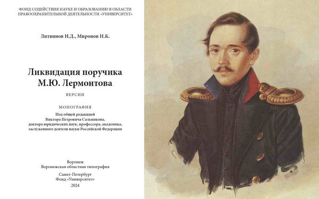 В начале 2024 года в Воронеже вышла книга: «Ликвидация поручика М.Ю. Лермонтова». Необычность книги не только в её названии, но в её авторах и рецензентах. Авторы: профессиональный контрразведчик генерал-лейтенант запаса ФСБ РФ Иван Кузьмич Миронов и специалист в области терроризма полковник милиции в отставке Николай Дмитриевич Литвинов. Для Литвинова это уже вторая книга о Лермонтове. Первую: «М.Ю. Лермонтов: величие и трагедия», он выпустил в 2015 году. Новая книга – полноценное научное исследование, где авторы не описывают исторические события, а анализируют и исследуют их. В роли рецензентов выступили известные учёные: М.Ю. Гутман – доктор юридических наук, кандидат исторических наук, профессор, заслуженный работник высшей школы РФ (Санкт-Петербург) и С.И. Захарцев – доктор юридических наук, академик РАЕН (Москва). Работа вышла под общей редакцией и со вступительным словом доктора юридических наук, академика РАЕН, заслуженного деятеля науки РФ В.П. Сальникова.