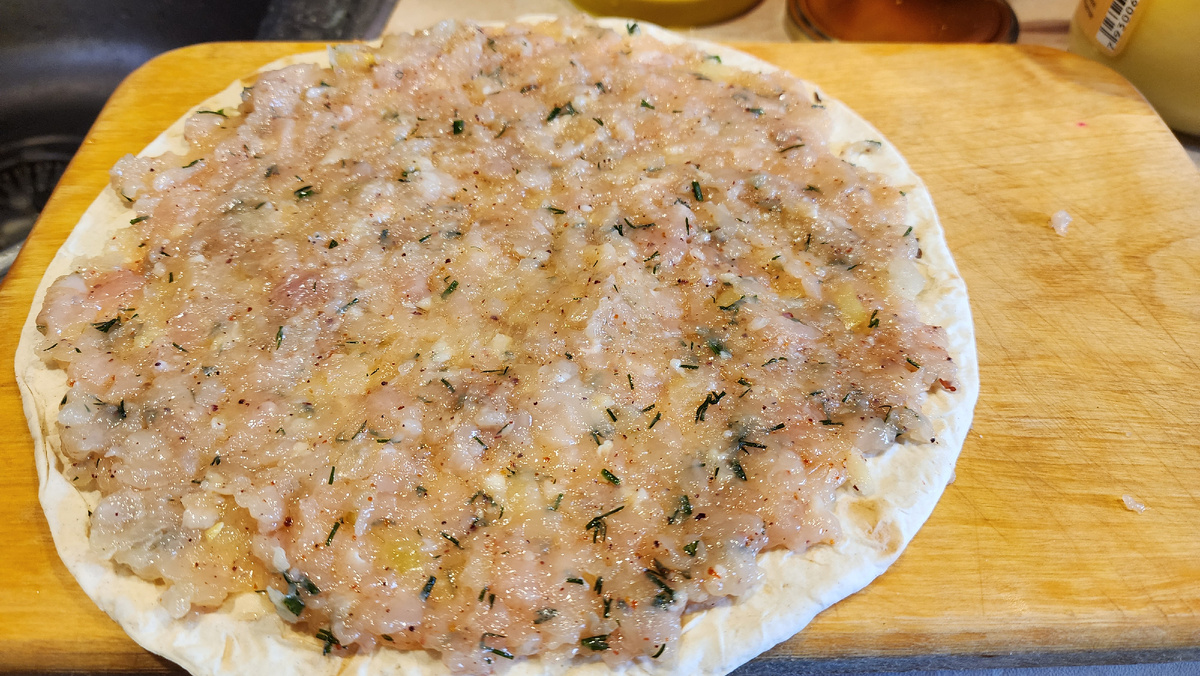 Мы всей семьёй обожаем это блюда. Готовлю его на завтрак в выходные дни. Это такой бургер в лаваше. Мало теста, но много начинки! Сначала необходимо приготовить фарш . Я всегда использую курицу для фарша. Она быстро готовится . Беру 3-4 кусочка филе грудки , 2 луковицы и 3зуб. чеснока . Лука берём много,чтобы было сочно! В фарш добавляю 1 яйцо, специи по вкусу и зелень. Готовлю я бургеры на круглых лепешках- лавашах. Наношу фарш на лепёшку с одной стороны И кладу лепёшку фаршем вниз на разогретую сковороду. В сковороде у меня масло Гхи. Жарю только на нем. Примерно 4 минуты обжариваем и переворачиваем и кладём сыр, можно тонко порезанный, можно натереть на терке Обжариваем ещё пару минут, чтобы сыр начал плавится. Обязательно делаем соус : Смешиваем майонез, сметану, кетчуп в равных пропорциях и натераем на терке 1 соленый огурец Смазываем лепёшку соусом и выкладываем начинку. Тут можно ложить то,что любите У меня салат айсбери, помидоры, Морковка по корейски. Получается очень соч