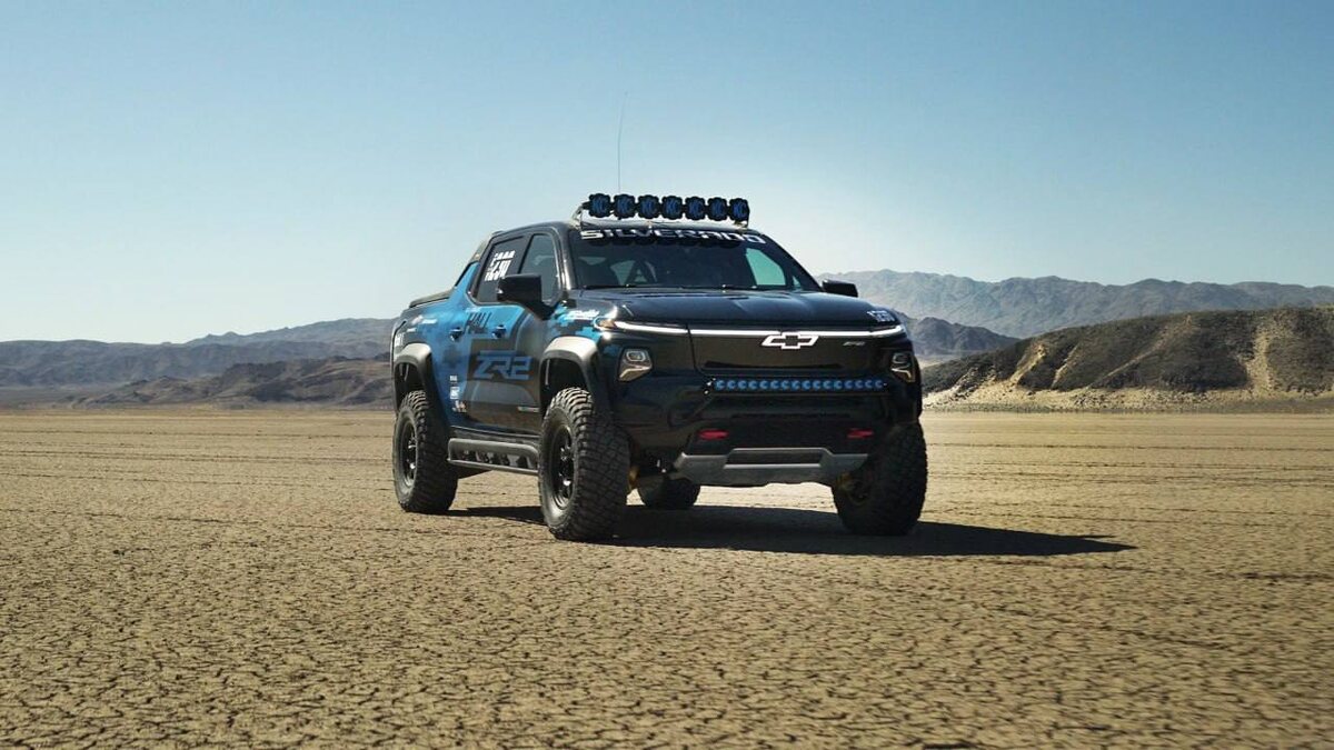 Компания Chevrolet представила уникальную модификацию своего электрического пикапа Silverado EV под названием ZR2. Эта модель оснащена тремя моторами общей мощностью 1115 лошадиных сил. Пикап имеет лифтованную подвеску, адаптивные амортизаторы и колёса с 37-дюймовыми шинами, что позволяет ему легко преодолевать любые внедорожные трассы. Усиленная защита снизу обеспечивает уверенность при прохождении сложных участков. Хотя Chevrolet не планирует выпускать эту версию пикапа в серийное производство, она примет участие в престижной внедорожной гонке Mint 400, где будет соревноваться с другими участниками класса Open Production EV. Компания также представила концепт мощного гоночного пикапа Silverado EV ZR2, который оснащён трёхмоторной силовой установкой мощностью 1100 лошадиных сил. Этот пикап создан для участия в легендарной внедорожной гонке Mint 400 и имеет серьёзные внедорожные доработки, включая увеличенный дорожный просвет, усиленную защиту днища и адаптивные амортизаторы.