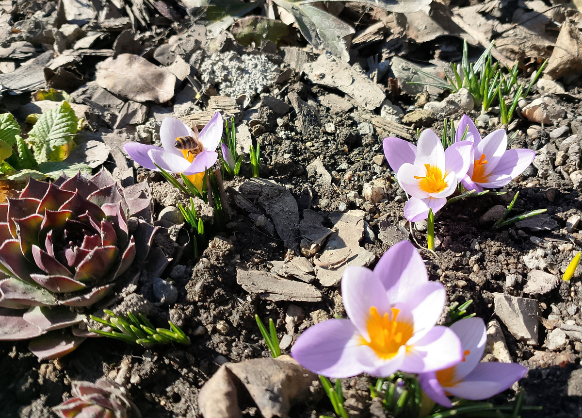 Цветущего в саду пока очень мало, фотографии галантусов показывают уже и владельцы более северных садов, у нас они тоже начали цвести, но пока не дружно. Удивили крокусы, буквально за один день выдали на гора бутоны и распустились навстречу солнцу. Это сорт Firefly, он ежегодно открывает сезон первоцветов, растёт на солнечном месте, в самом начале "межколёсного" цветника.