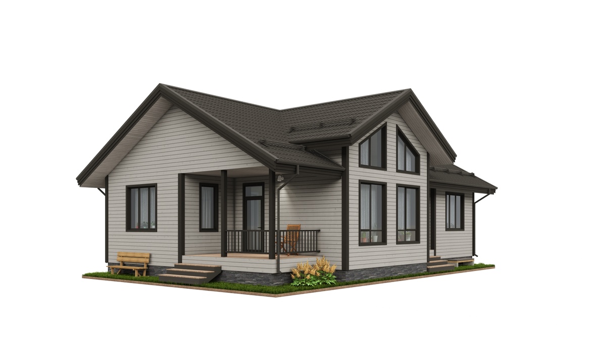 Площадь помещений 97,3 м², терраса 10,6 м². Утепление минеральной ватой. Цокольное перекрытие 200 мм, Наружные стены 150 мм + 50 мм перекрёстного утепления, Чердачное перекрытие 250 мм. В зоне гостиной организован "второй свет" Каркас из сухой строганной доски, сечение 90х45, 140х45, 190х45 мм. Фундамент ж/б сваи. Регион строительства Московская область. В состав проекта входит: - Эскизный проект; - Конструктивный раздел; - Спецификация материалов; - Схема раскроя пиломатериала; #купитьпроектдома #заказатьпроектдома #проекткаркасногодома #проектдома #каркасныйдом #проекткаркас #проектдомамосква #проектзагородногодома