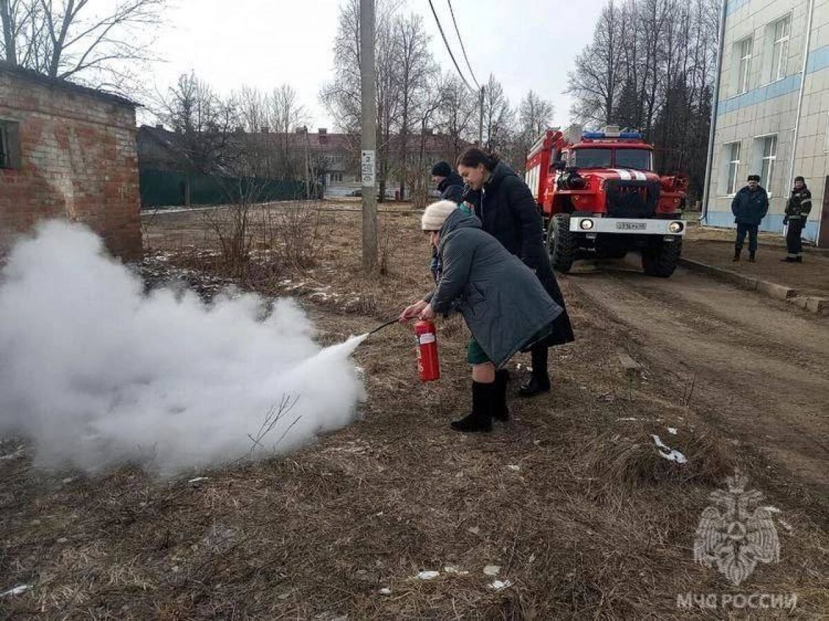 После эвакуации сотрудники школы потренировались использовать первичные средства пожаротушения.
