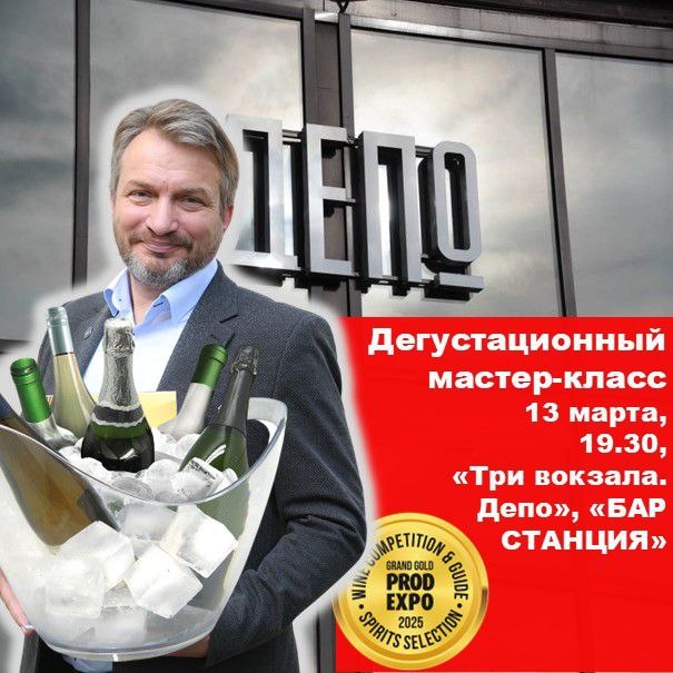 13 марта Клуб ДЕГУСТАРИУМ продолжает дегустационный анализ победителей крупнейшего международного Конкурса. Заседание проводит Юрий Юдич - судья международных Конкурсов вин, который принес эту практику в Россию, и сам организовал несколько Конкурсов вин и спиртных напитков, в том числе самый крупный международный Конкурс “Prodexpo Wine Guide”. Именно золотые медалисты Конкурса принимают участие в сете, в котором собраны не только российское, но и китайское вино, так же практически единственный российский Коломбар и топовое вино “Бомонд” от Шато Ай-Даниль Напоминаю, коллеги, что дегустация проходит в формате “Вино и вода”, а широчайший спектр закусок вы можете приобрести в гастромолле “З вокзала. Депо” В программе: ✔️Дегустация 3 белых, а также 4 красных вин победителей + Велком дринк и крепкий сюрприз от Юдича ✔️Ведущий дегустации - Юрий Юдич - винный эксперт, судья международных и российских конкурсов вин, руководитель комитета ФРИО по российскому виноделию, блогер и основатель К