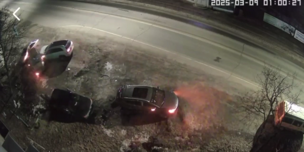 Авария произошла в ночь на воскресенье. Водитель за рулем внедорожника на большой скорости протаранил четыре припаркованных у жилого дома автомобиля. По предварительным данным, он не пострадал.