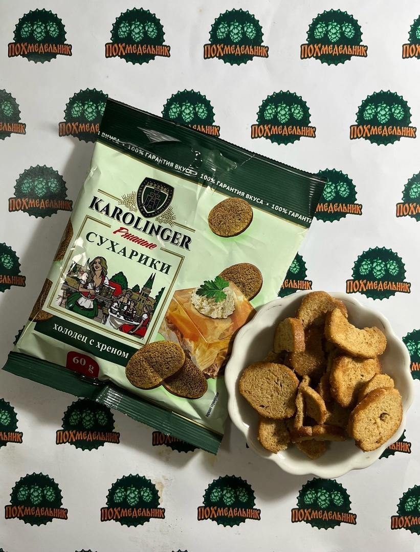 Статистика: сухарики ржаные, состав: хлеб ржано-пшеничный (мука ржаная обдирная хлебопекарная, мука пшеничная хлебопекарная первого сорта, вода питьевая, дрожжи хлебопекарные, соль), масло растительное (подсолнечное), комплексная пищевая добавка Холодец с хреном, соль, овощи сушеные (пастернак, чеснок), мальтодекстрин, усилитель вкуса и аромата (глутамат натрия Е621), сухая молочная сыворотка, декстроза, ароматизаторы «Хрен», «Свинина жареная», «Мясо», сахар, антикомкователь (Е551), антиокислители (лимонная кислота, токоферол). Масса нетто: 60 г Дата изготовления: 15.01.2025 Изготовитель: ООО «ТПК Восход», Россия, Московская область, Дмитровский район, рабочий поселок Деденево. Адрес места осуществления деятельности: Россия, Московская область, г. Дмитров По-братски: и пока финальный вкус в этой серии. Если честно, то мне вполне понравилось, тем более, что производитель не стал выпускать банальные сухарики, а сделал целые слайсы со вкусом. Короче, мы уже пробовали раков и шашлык, сегод