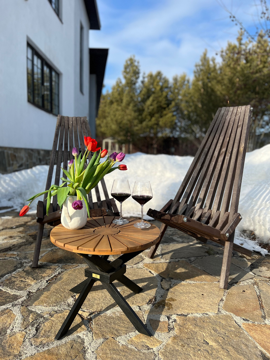 Погода на Урале меняется стремительно. Вот только что ярко светило солнце, пахло весной и подтаявшим снегом, ароматами тюльпанов и мимозой, как небо застили тучи и начался снегопад. В понедельник выпало столько снега, сколько и зимой не наблюдалось. А мы от него уже и отвыкли. За всю зиму только раз доставали снегоуборщик, когда такое было! Но как обычно бывает, зима не спешит передавать эстафету весне. Еще и в мае может выпасть снег, и в июне... В субботу, поздравив наших мам с праздником, рванули с мужем на дачу. Жаль, что для пикника погода еще не подходящая. Солнце хоть и светит, но не греет, ветер. Как перезимуют растения в этом году, пока непонятно. Снежный покров очень маленький, в теплицу набрасывать нечего. Из под снега торчат ветви гортензий, а под старой сосной, которую обнимает круговая скамья, совсем нет снега. По дороге на дачу заехали в пункт доставки. Я заказала плоскорез Фокина. Спасибо Ольге, автору канала "Из Тюмени с любовью, о цветах". Она так захватывающе расс