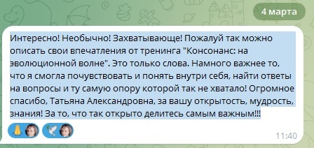 Благодарно принимающие мои опыт и состояние и искренне делящиеся своими шагами, наблюдениями и результатами.