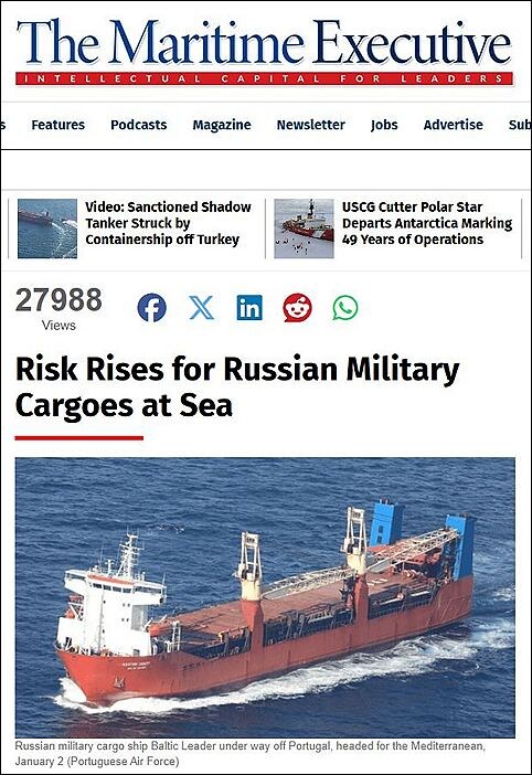 А вот скрин с достаточно откровенной статьёй "Растёт риск для российских военных грузов в море":